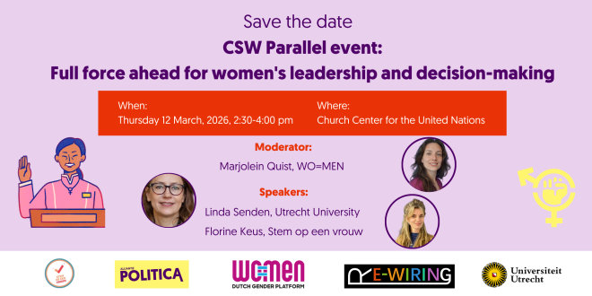 Datum: 12-03-2026Tijd: 14.30 - 16.00 uur (New York tijd)Locatie: UN Church Center, New YorkThis session is part of the CSW70 NGO Forum that takes place 9 - 19 March 2026 in New York simultaneous to the Commission at the Status of Women at the United Nations. It is organised by alliance Politica and RE-WIRING.